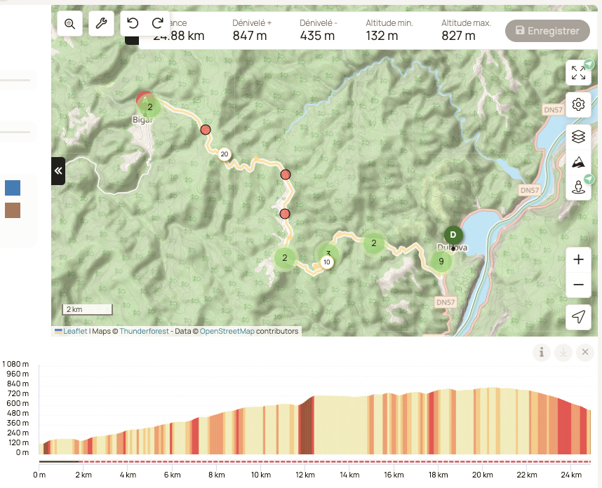 Rien ne vous empêchera de modifier ce tracé si vous vous rendez compte qu’il est plus difficile que vous ne le pensiez avant d’avoir calculé le dénivelé positif et négatif ou la distance totale de cet itinéraire.